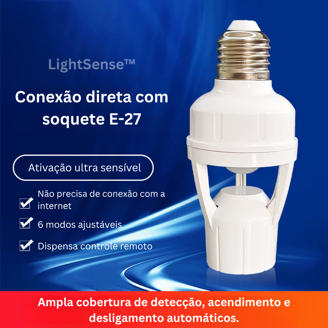 Usa a luz que preferires. O LightSense é compatível com lâmpadas LED, incandescentes, fluorescentes e de baixo consumo, oferecendo versatilidade para se adaptar às tuas necessidades.