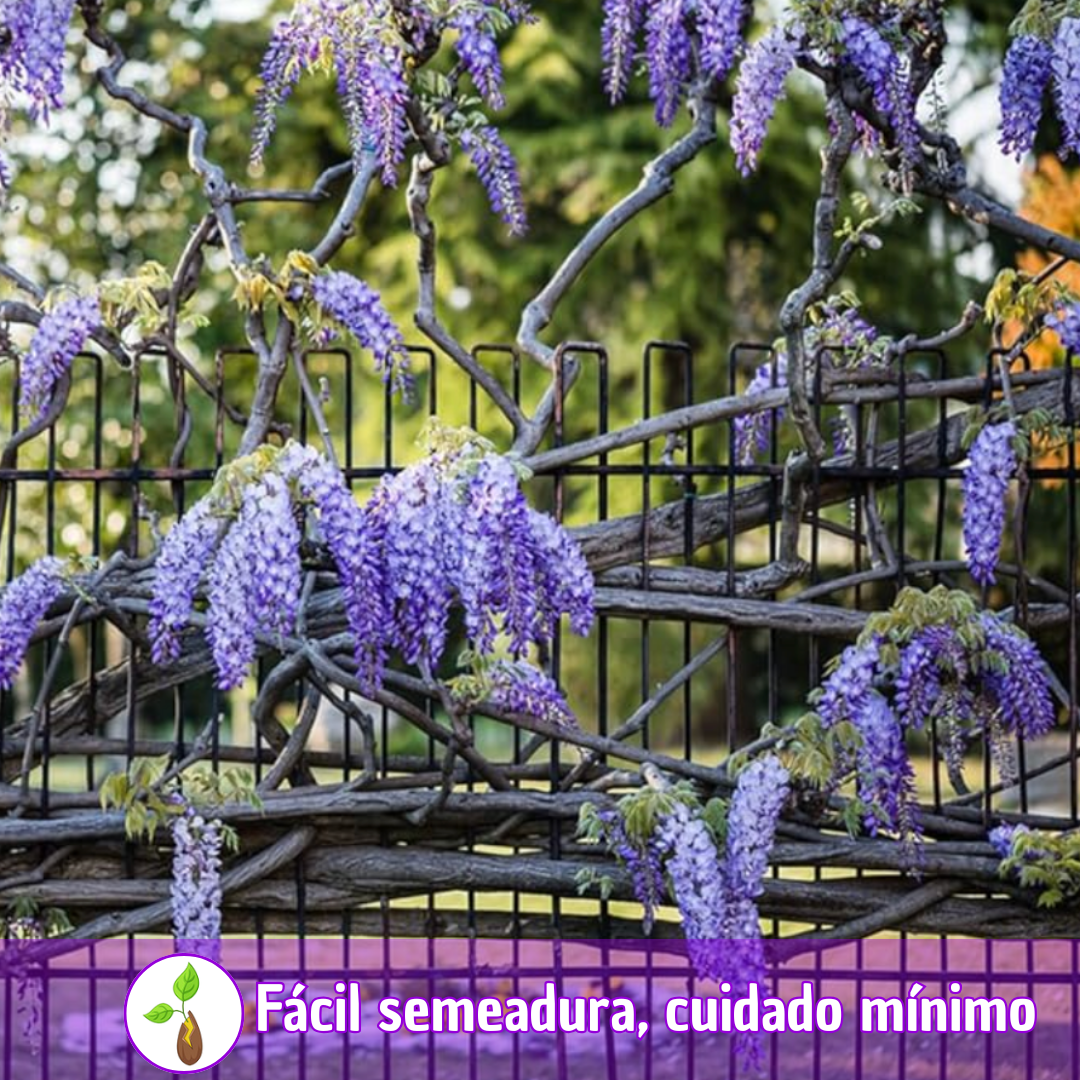 Faça do seu espaço um espetáculo natural com a glicínia roxa. As PurpleBlossom oferecem sementes de alta germinação para uma trepadeira de crescimento rápido e flores vibrantes.