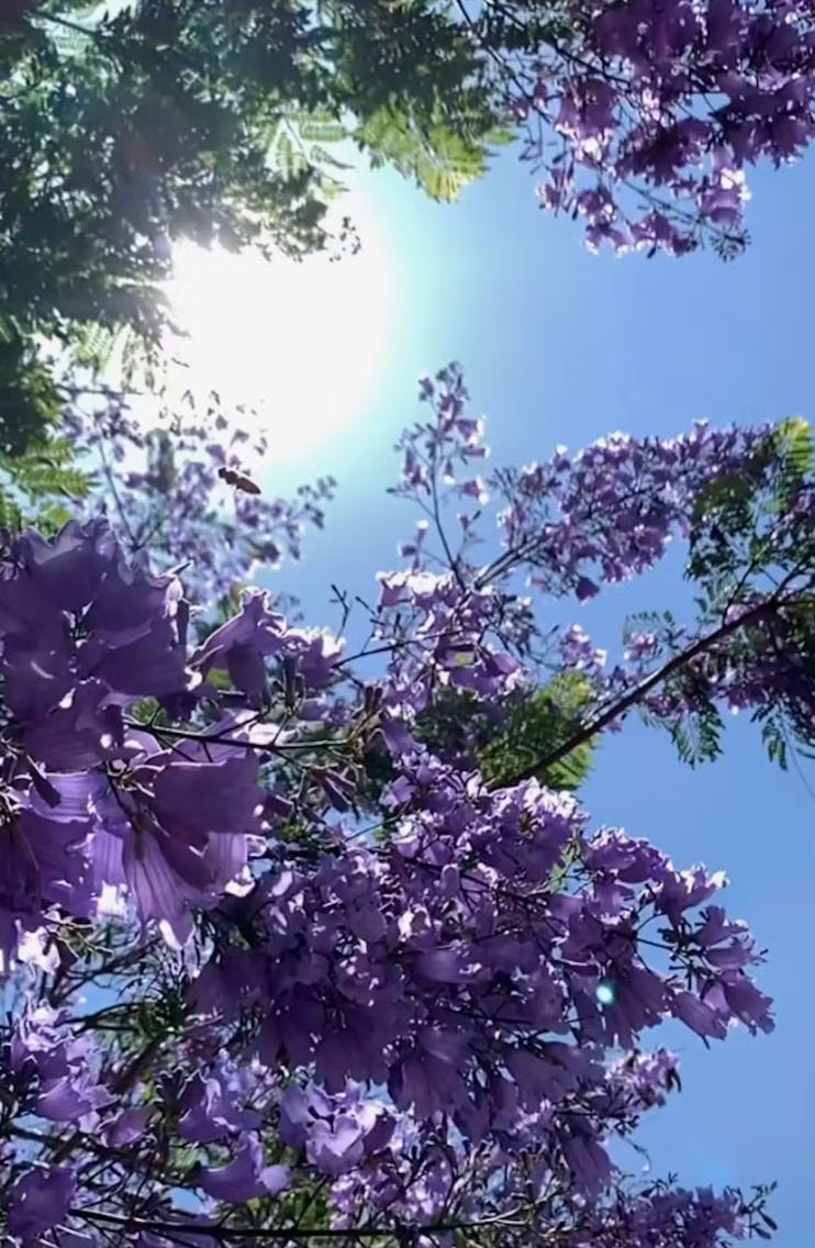 Os seus impressionantes ramos de flores roxas em cascata criam uma paisagem encantadora e enchem o ar com um aroma doce e envolvente.